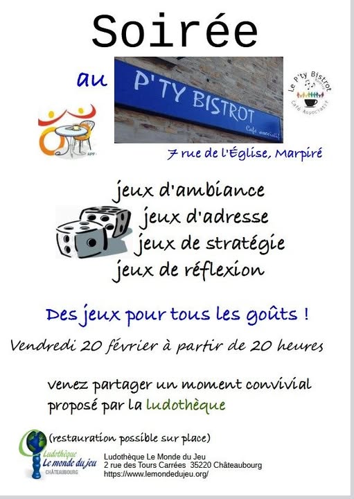 Ce vendredi à partir de 20 h nous vous proposons une nouvelle soirée jeux: